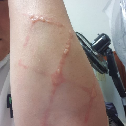 저저번주 월요일 잠에서깨어보니 팔에 체크무늬 물집이 생겨있었습니다
