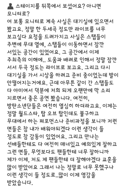 월드스타인데도 다들 너무 열심히하고 예의있고 팬들한테도 너무 잘해서 많은 영감을 받고 왔다구 ㅋㅋㅋ