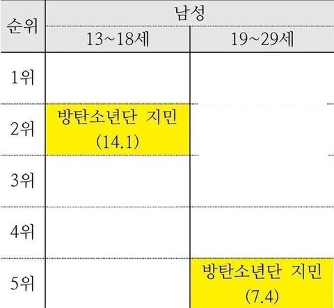 [명사] 2018 한국갤.럽 아이돌 선호도 1위를 기록한 지민이는 성별/연령별 선호도에서 10대 여성 1위, 20대 여성 1위, 10대 남성 2위, 20대 남성 5위를 차지한다. 여성 선호도는 다소 예상이 가능한 범주였으나, 남성 선호도 부문에 있어서는 남돌로써 쟁쟁한 여돌 사이에 홀로 순위권에 오른 것이 매우 이례적이라는 반응이 많았다. 10대/20대 남성이 아마 '지미니형'이라고 불렀을 것이다 라는 것이 단어의 어원.