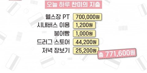 찬미가 하루에 쓴 돈 77만원이라고 하면 엄청 커보이는데