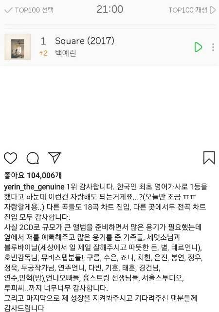 그리고 스퀘어가 국내 가요 중 영문 가사곡이 실시간 차트 1위를 달성한 일은 최초 사례래