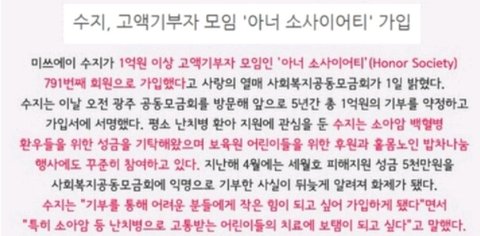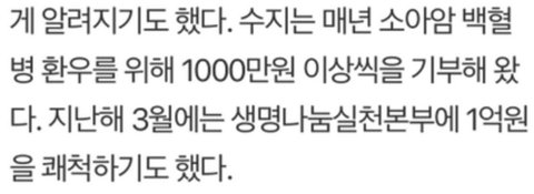 매년 한 곳에만 4억 5천만원을 후원하고 있는 수지