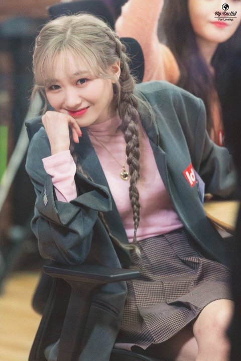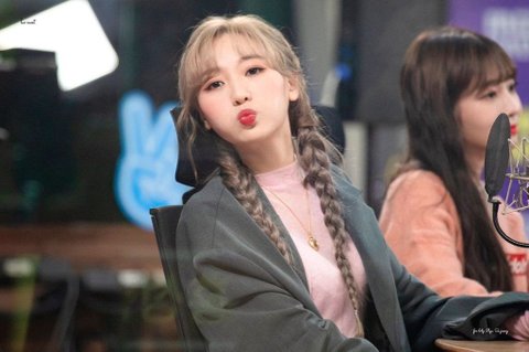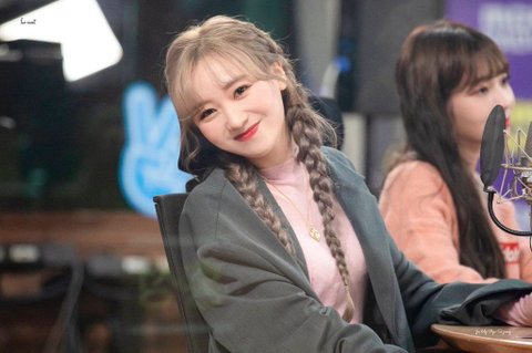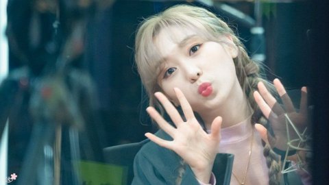 애쉬 머리에 양갈래로 땋고 창 밖에서 보고 잇는 팬들한테