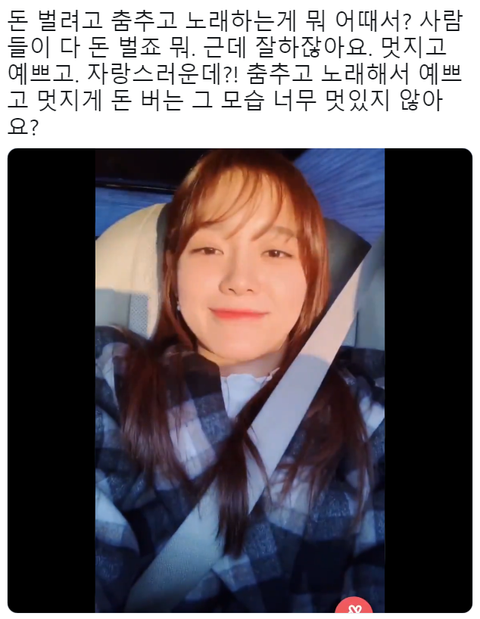 '돈 벌려고 춤추고 노래하는 꼭두각시 k-pop 아이돌'이라는