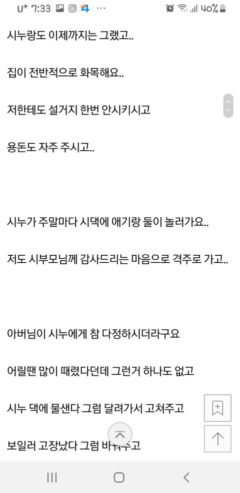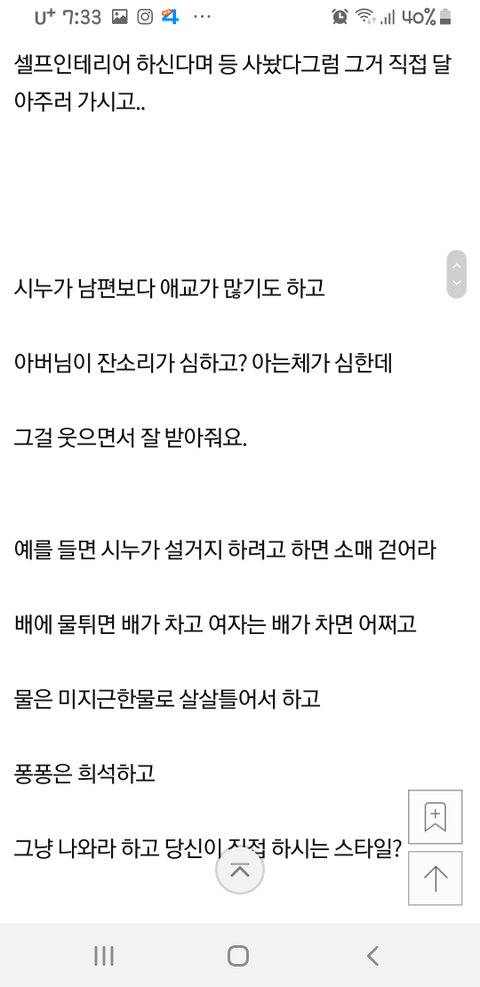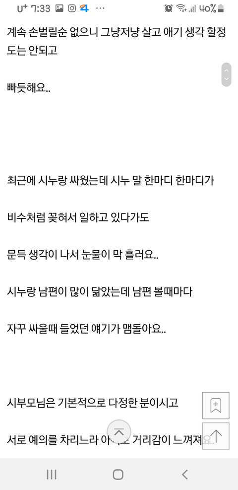 그 시누이 말빨이 부럽네요 ㅎㅎ 흥분하지 않고 바로 튀어 나오며 정곡을 찔러주는 말빨..캬~~