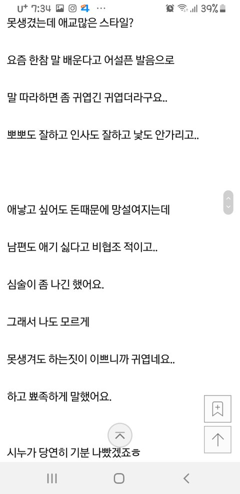 헐~ 2살 밖에 안된 아기에게 막말하고 지가 상처 받다니.