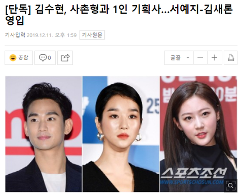 1인 기획사 설립하고 서예지와 김새론 영입한 김수현