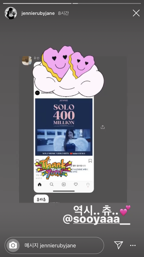 아이돌 포함한 연예인들 인스타 공인계정? 말고 개인 사계정 써?? 제니 인스타 스토리 보니까 지수가 솔로 조회수 축하해준다고 카톡으로 보낸 거 보고 궁금해졌어