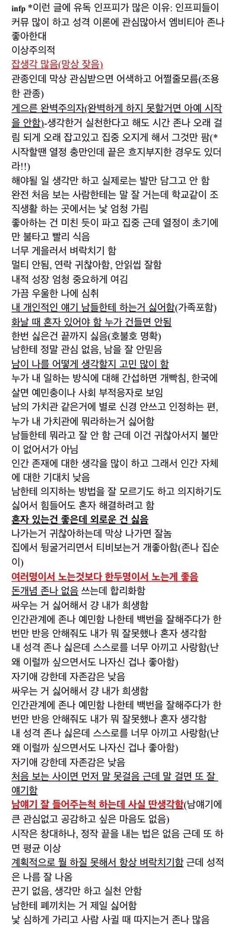 커뮤에 많다는 INFP 특징ㄷㄷ