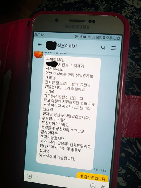 무슨소리인가싶어서 어머니폰을 몰래봤어요