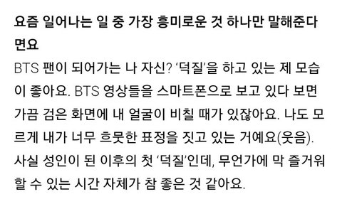 "우연찮게 노래를 듣다가 방탄소년단을 알게 됐어요.