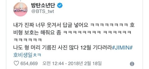 [관용어] 트위.터 답멘 기능을 의미하는 지민의 단어. 제이홉의 생일에 엽사를 올린 진의 트윗을 본 지민이, 너무 웃긴 나머지 답글을 넣은 것에서 유래한다.