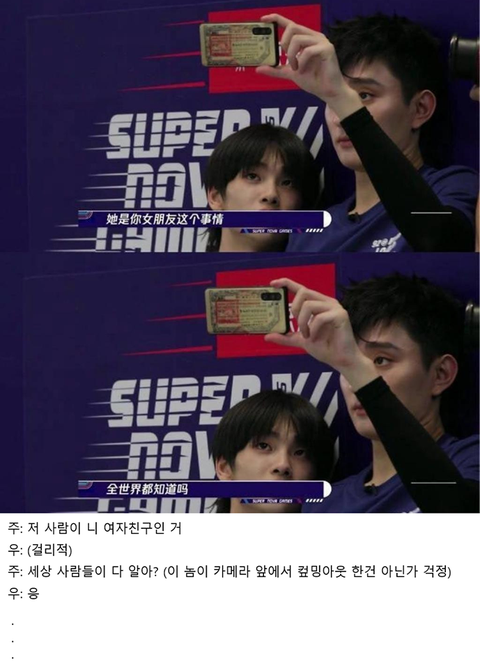 중간에 한장 빠졌네ㅋㅋㅋ 키큰애가 거치대한테 어이없단식으로 쟤 내 여자친구잖아 말해줌ㅋㅋㅋㅋ 웬만한 사람들 다 아는 사실이었는데 거치대만 저 현장에서 저 말 듣고 앎