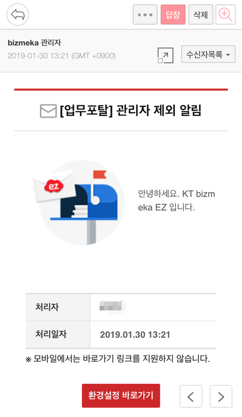<제 업무를 못하도록 업무포탈에서 관리자 박탈시켰다는 알림입니다>