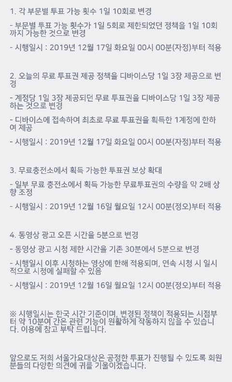 12/17일부터 기기 당 무료투표권 3장