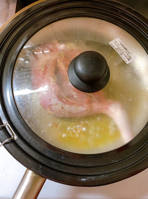 두께가 좀 있으므로 뚜껑을 닫아 중불에 서서히 익힌다.