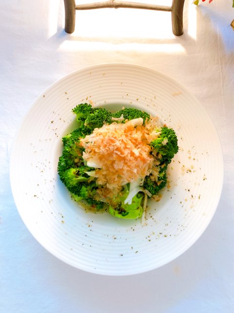 양파에 참깨 드레싱으로 마무리한다.브로콜리 스테이크는 산뜻한 술안주로도 나쁘지 않다.취향에 따라 치즈를 함께 하거나 베이컨, 프로슈토 햄과 함께 해도 좋다.