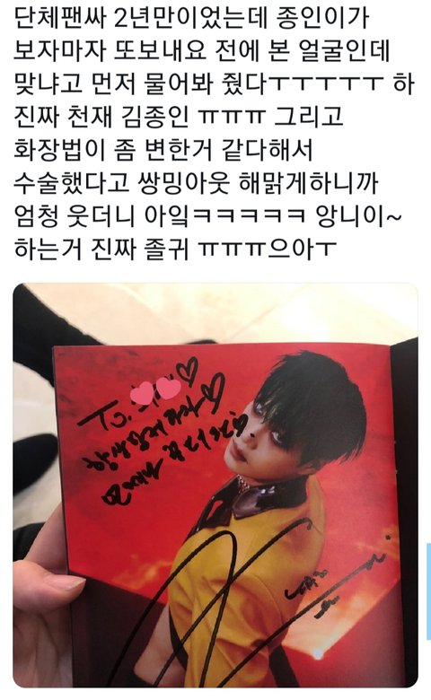 1. 팬이 2년만에 카이에게 싸인을 받는데