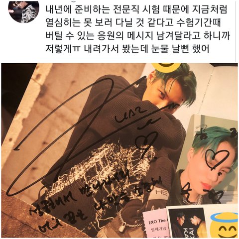 3. 팬이 내년에는 현생(시험준비)때문에 팬활동을 이전처럼 자주 못할수도 있다고 하니까 카이가 써준 말..