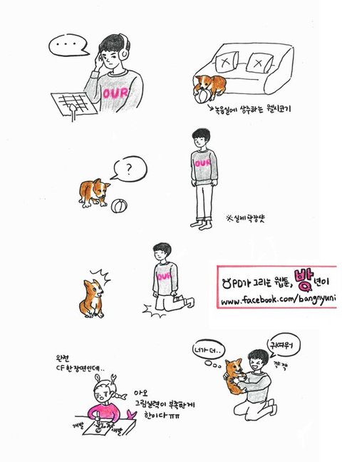 3. 녹음실에 있는 웰시코기를 보자마자 너무 좋아서 무릎 꽝! 한 경수