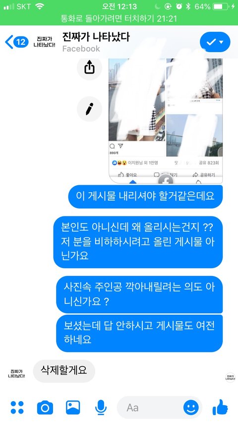 페북 진짜가 나타났다 라는 페이지 아냐 너네