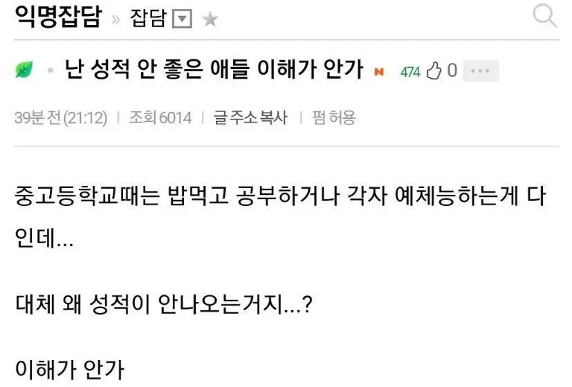 난 성적 안 좋은 애들 이해가 안가.instiz