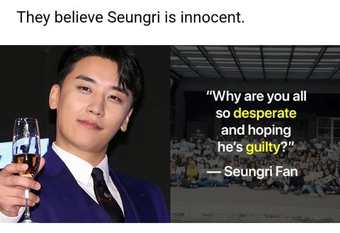 K netizen들 쓰레기 언론(trash media)에 세뇌(brainwash)당해서 승리 싸불(싸이버불링)하는거라고 최근에 연예인 자살사건 못봤냐며 싸불 그만하래