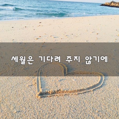 ♥ 세월은 기다려 주지 않기에 ♥ 사랑하는 사람이 영원히 내 곁에 있으리라그리 무심히 대하진 마세요. 세월 앞에는 무엇도 영원할 수 없기에드릴 수 있을 때 마음도, 사랑도 흠뻑 줄 수 있을 만큼 최선을 다해요. 다음을 기약하는 사랑은 하나마나 하는 사랑이며이 다음 형편이 되면 이란 핑계는 안 하니만 못하지요. 사랑하는 부모님은 세월이 모셔 가는 것이고사랑하는 사람은 당신의 말 한 마디에 지옥과 천국을 드나들지요. 사랑 나눔에 아까워 말아요 사랑함에 사랑하는 사람을 위함에다시는 보지 못할 날이 오기 전에마음을 다해 후회없는 사랑을 해요. 영원한 이별이 와도 아낌없는 사랑을 주었다면 당신이 드린 사랑의 깊이 그 만큼 아픔도 적을 거예요.