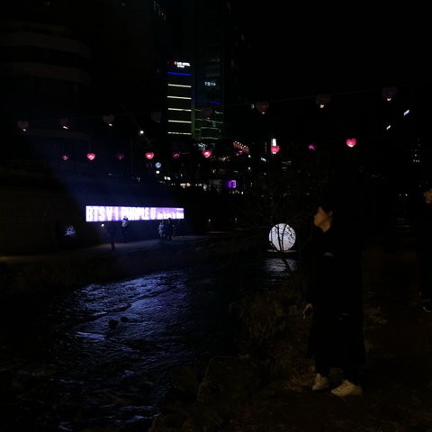 팬은아니고 걍 방탄 호감있는사람인데 청계천에 막 산타랑 눈사람있는쪽에 뷔 어쩌구있길래 찍어봤어그냥!