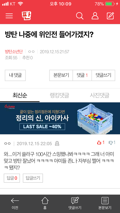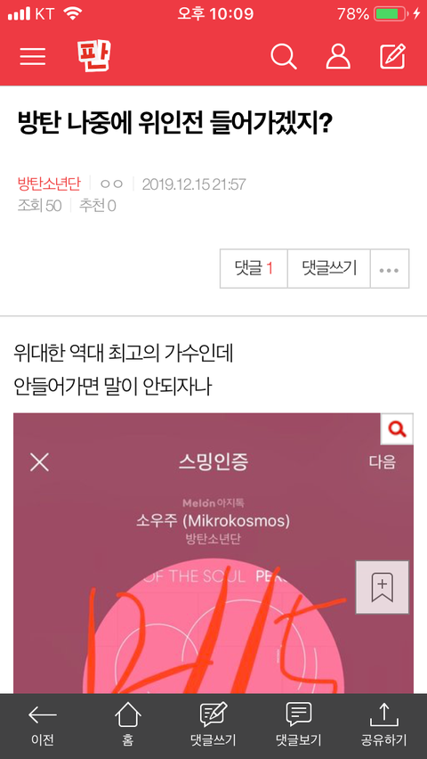 ⚠️조방)밑 방탄 나중에 위인전 여기서 댓포함 인증도용임