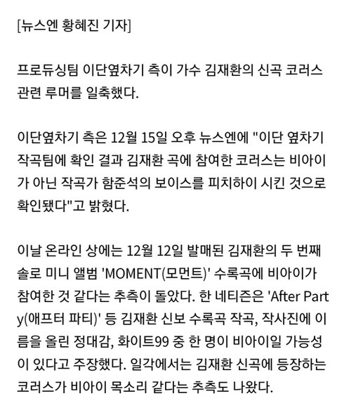 [공식]김재환 신곡 코러스 비아이 아닌 함준석 목소리