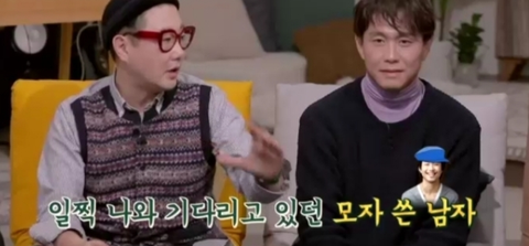 일찍 나와 기다리고 있던 모자 쓴 남자가 있었고
