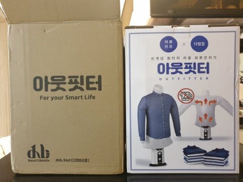 그러다가 아웃핏터 보자마자 이거다 싶어서 바로 질렀습니다.모르시는 분들을 위해 잠깐 설명하자면, 일반 의류관리기와 마찬가지로 99.9% 살균, 탈취, 건조도 되면서 주름개선까지 된다는 제품입니다.