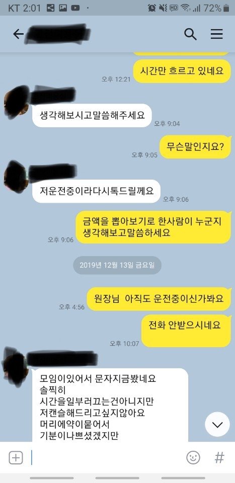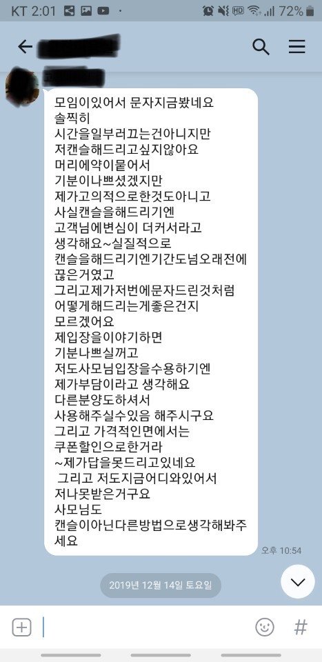 머리를 한게 7월인데 계속 생각해보고 연락을 준다하고 전화도 안받고, 카톡 답장도 느리게하며 지금은 확인만하고 답장을 안보내고 계시네요.