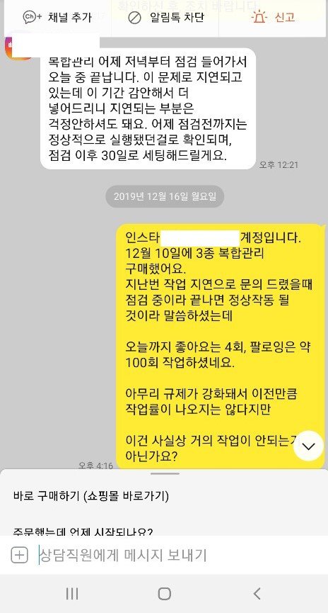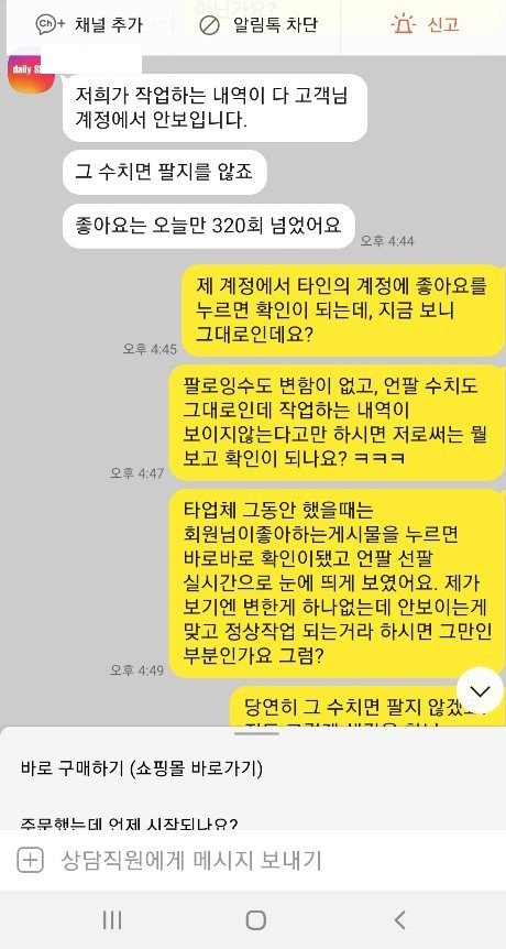 11일 문의한 날 저녁에, 좋아요 4회 정도 작업됐고