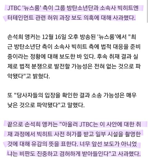 저걸 사과라고 받아들이는 사람이 과연 몇이나 될까싶다.. 정정보도와 사과방송 하라고 공홈과 공계에 항의해준 아미들 수고 많았어