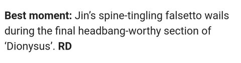 NME 영국 언론에서 페르소나 앨범 베스트 모먼트를 진 고음읋 뽑음! 진아 너의 수고는 우리가 알아ㅜㅜㅜ 축하해!!