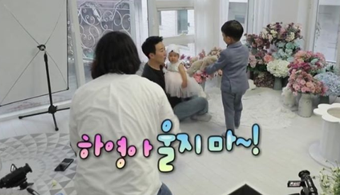 도경완과 장윤정 부부의 딸 하영이가 돌잔치 사진을 찍으러 갔는데 우는 거