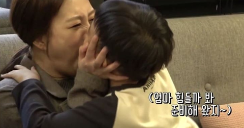 엄마한테 뽀뽀하면서 엄마 힘들까 봐 준비해 왔다고..
