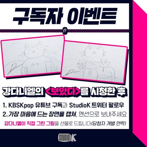 위 두 인증샷을 아래 타래로 남겨주시면 추첨을 통해 강다니엘이 직접 그린 그림을 보내드립니다 :)
