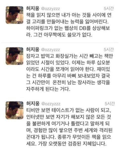 허지웅이 말하는 책을 읽어야 하는 이유