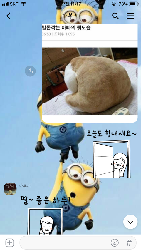 그리고 엄청 깔끔해 대부분 집안일은 아빠가 하시는 편이야 샤워도 매일매일 하시고 머리도 매일 손질해. 옷도 단정하게 입으셔 집에만 있다고 안씻는 우리 오빠를 보면 당연한건데도 멋있어 보인다..ㅋㅋ
