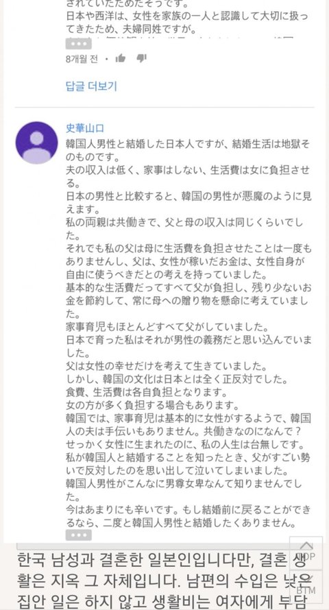 한국남자와 결혼한 일본여자의 절규(일본커뮤 핫글)