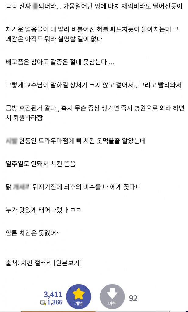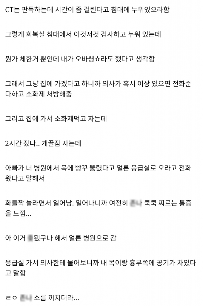 치킨 먹다가 목에 구멍뚫린 디씨인