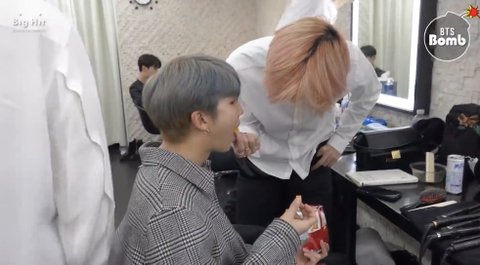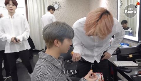우리 이쁨이 감자튀김 잘 먹다가 누구에게로 감자튀김을 내밀길래 지민이 인가 싶었는데