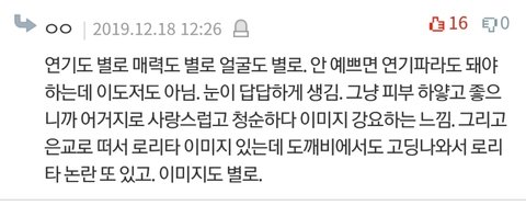 그리고 얼굴욕하는 댓글들은 진짜 뭔지ㅋㅋ 연기력가지고만 얘기하던가