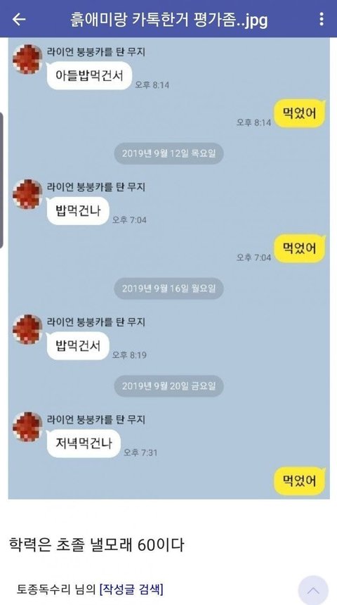 흙수저 야갤러의 엄마 카톡 프사 대공개..