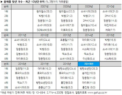 아이돌은 방탄소년단 트와이스 레드벨벳 들었네