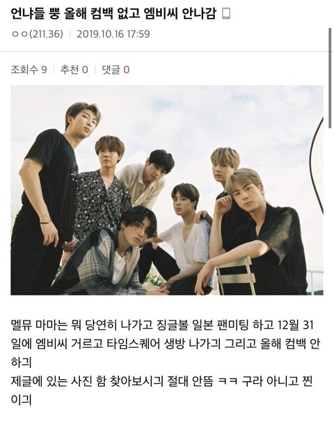 문제의 저 커뮤니티는 남ㅇ갤(연예인들에 대해 입에 담을 수 없는 수준의 워딩으로 까질하기 바쁘고 대부분의 모든 루머가 거기서 만들어짐 심지어 팬이라는 것들은 거기서 까빠짓함.) 에서 파생된 한 갤(멤버 한명은 배척하고 나머지 멤버들에 대해서는 까빠짓하는 곳) 이었음