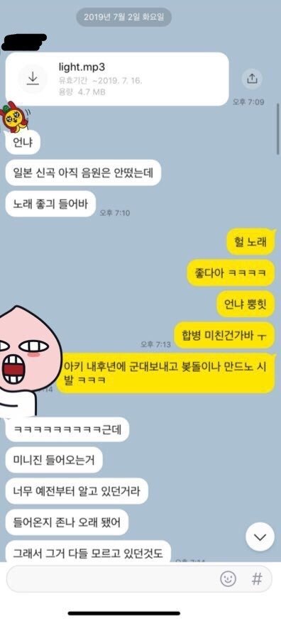 후에 그들끼리 친목하는 방에서 주고받던 톡들이 터짐, 알아듣지도 못하는 써방용어 남발이라 무슨 말인지는 모르겠는데 거기서 라이츠 발매도 전에 유출